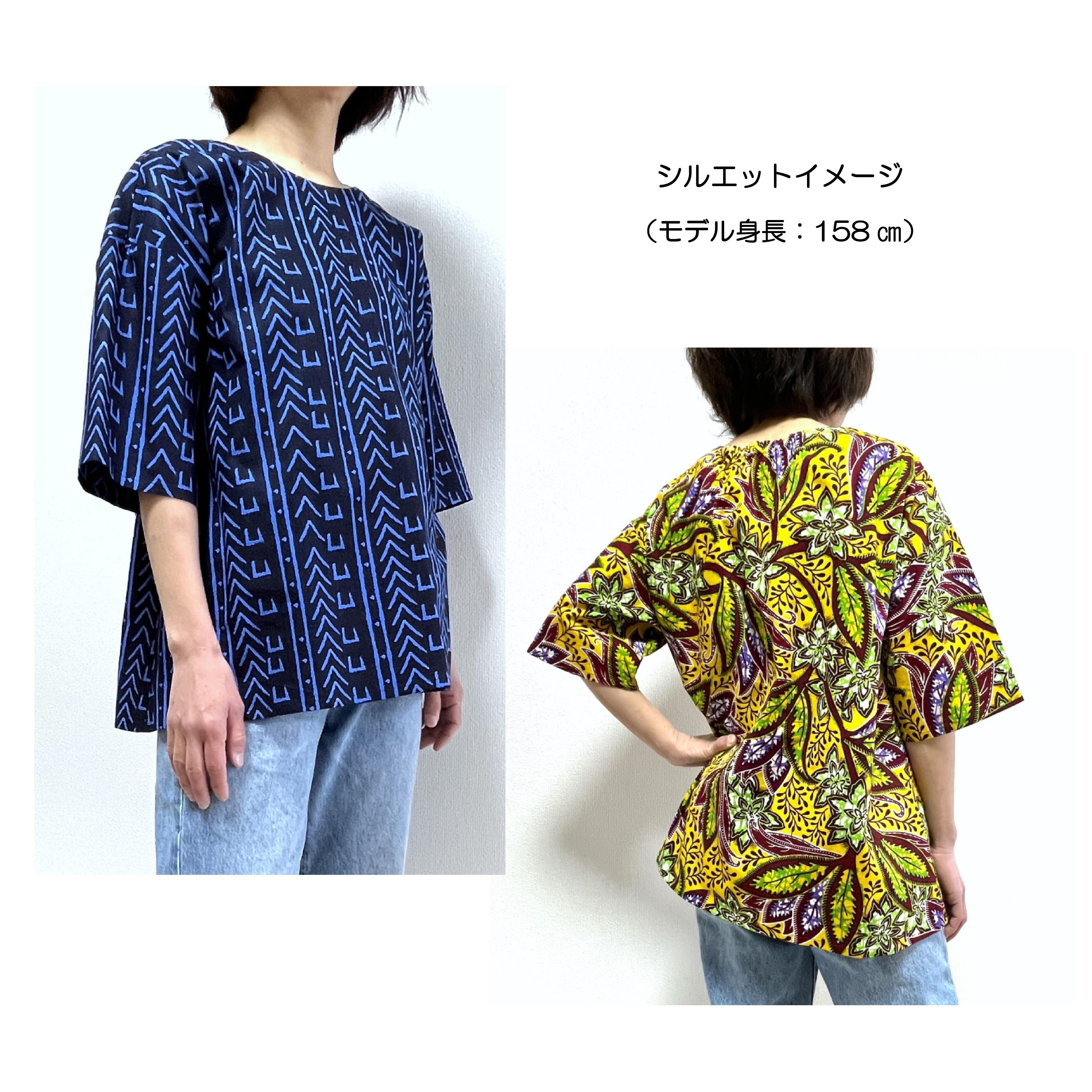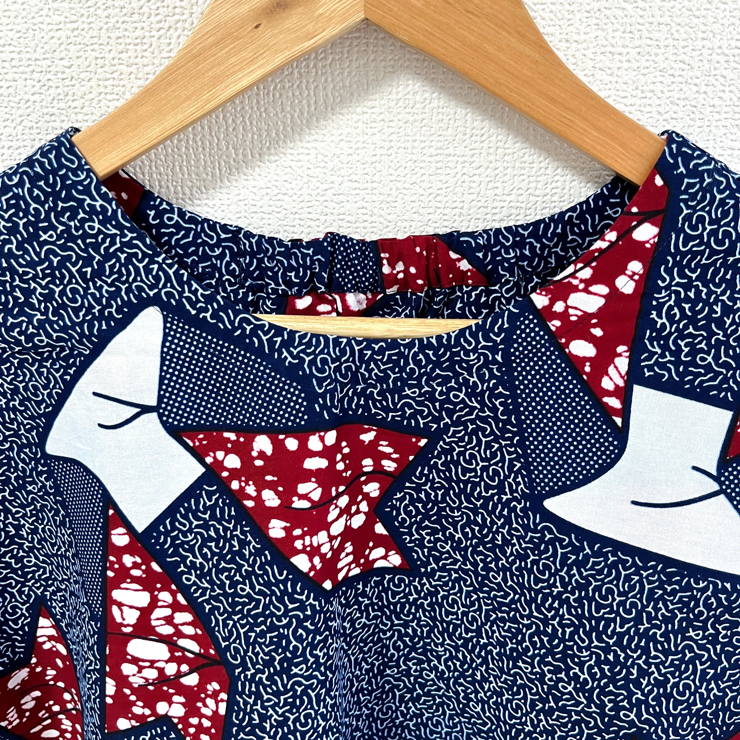 Aライン半袖プルオーバー/アフリカンプリント/Ribbon