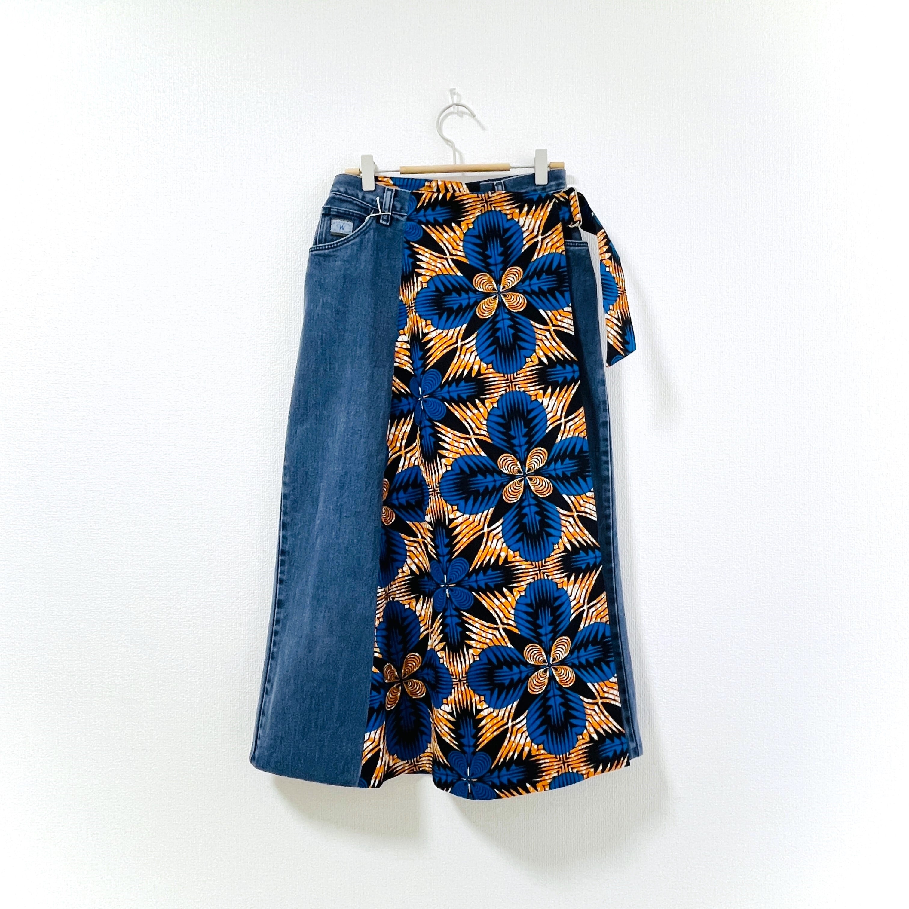 デニムリメイクラップスカート/アフリカンプリント/Heliophila