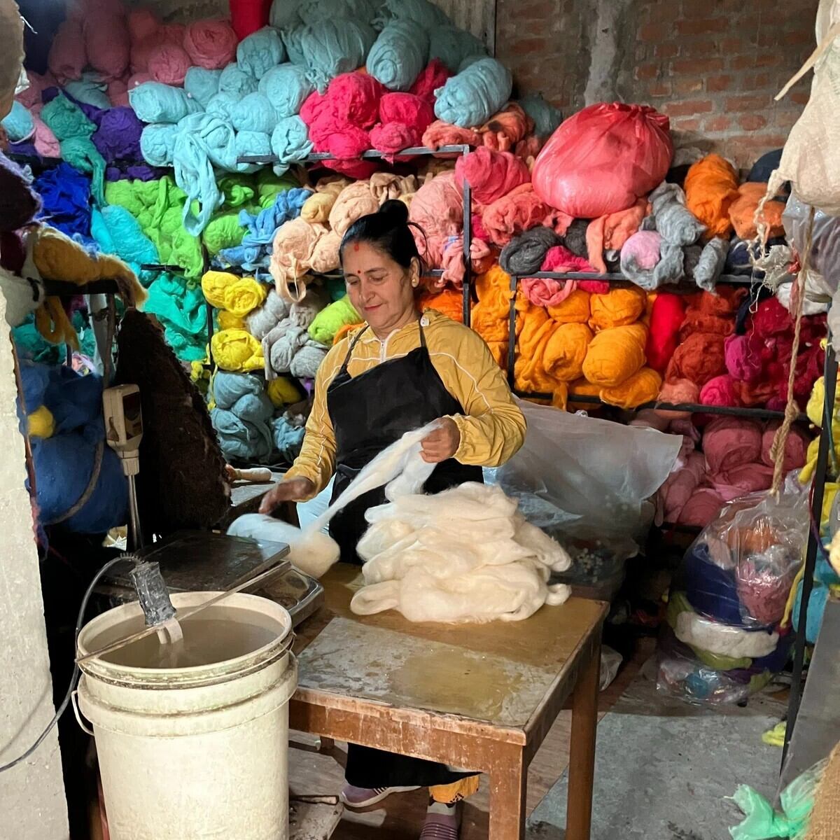 ネパールではフェルトは古くから人々の生活と共にある伝統工芸品です。現在でも1つ1つ手作業で作られています。
