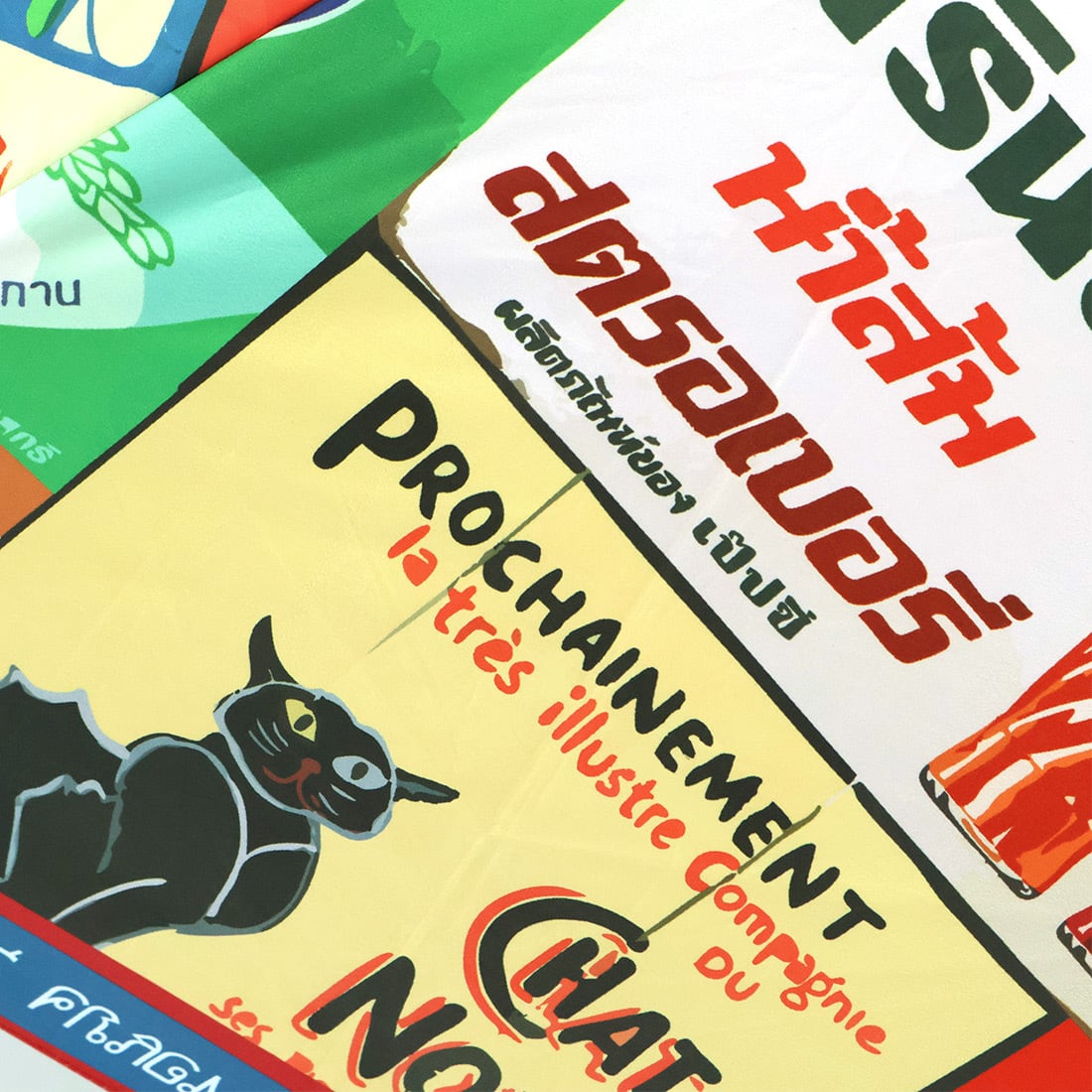 アフリカのストリートサインを切り張りしたようなポップでユニークなデザインの折畳み傘。