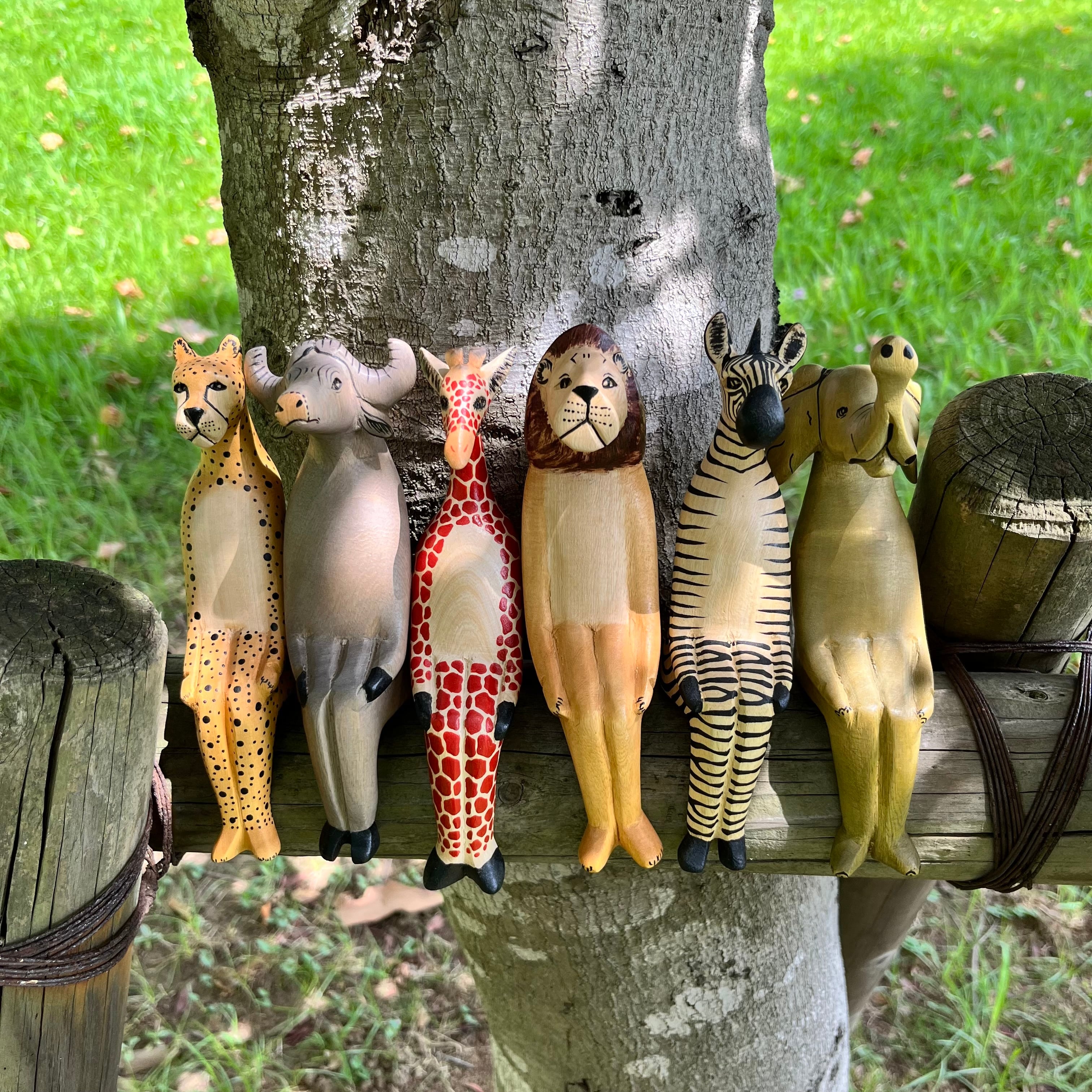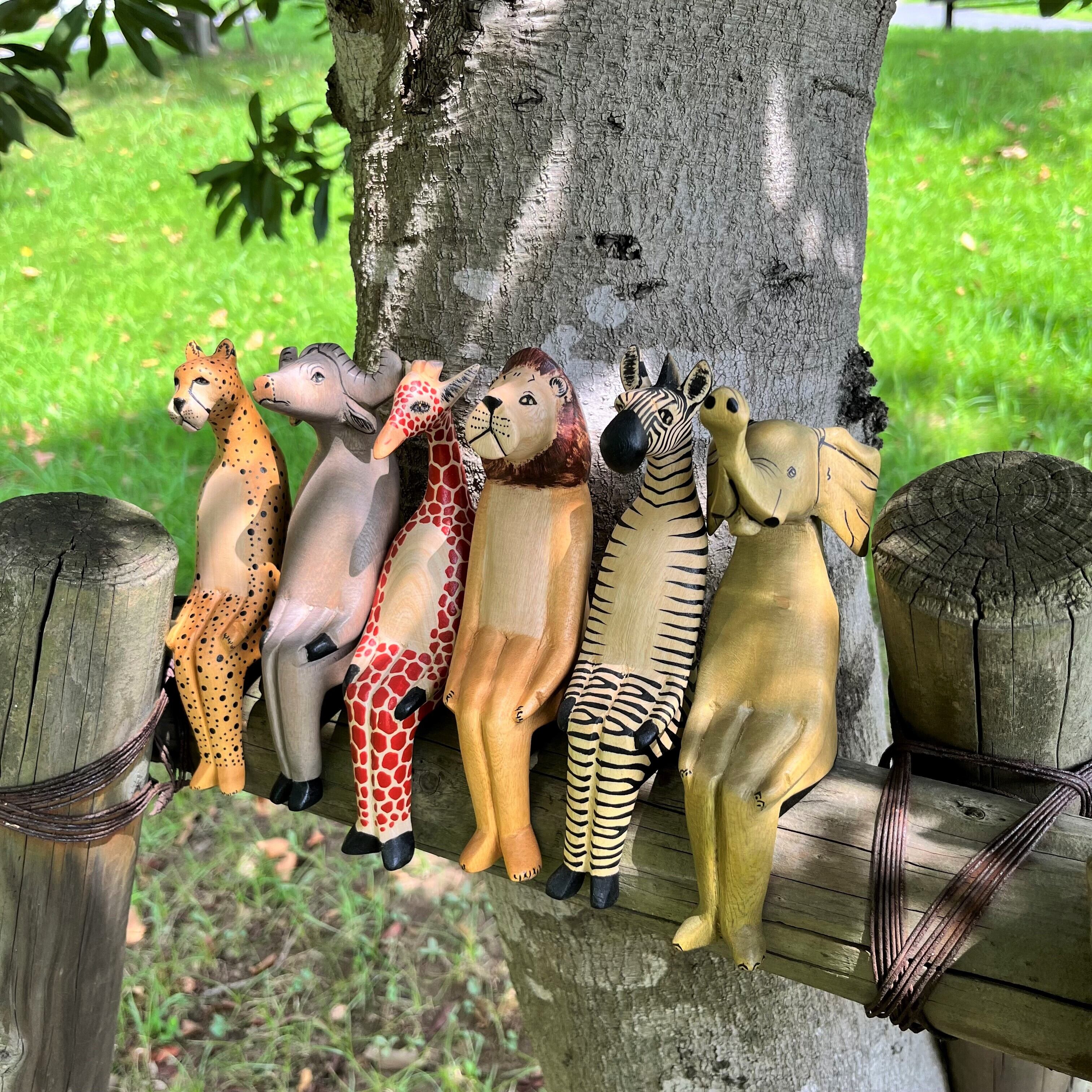 動物たちの優しい表情と洗練されたデザインが魅力的なメル木彫りお座り動物です。棚や窓辺に、ちょこんと飾ってお楽しみください。