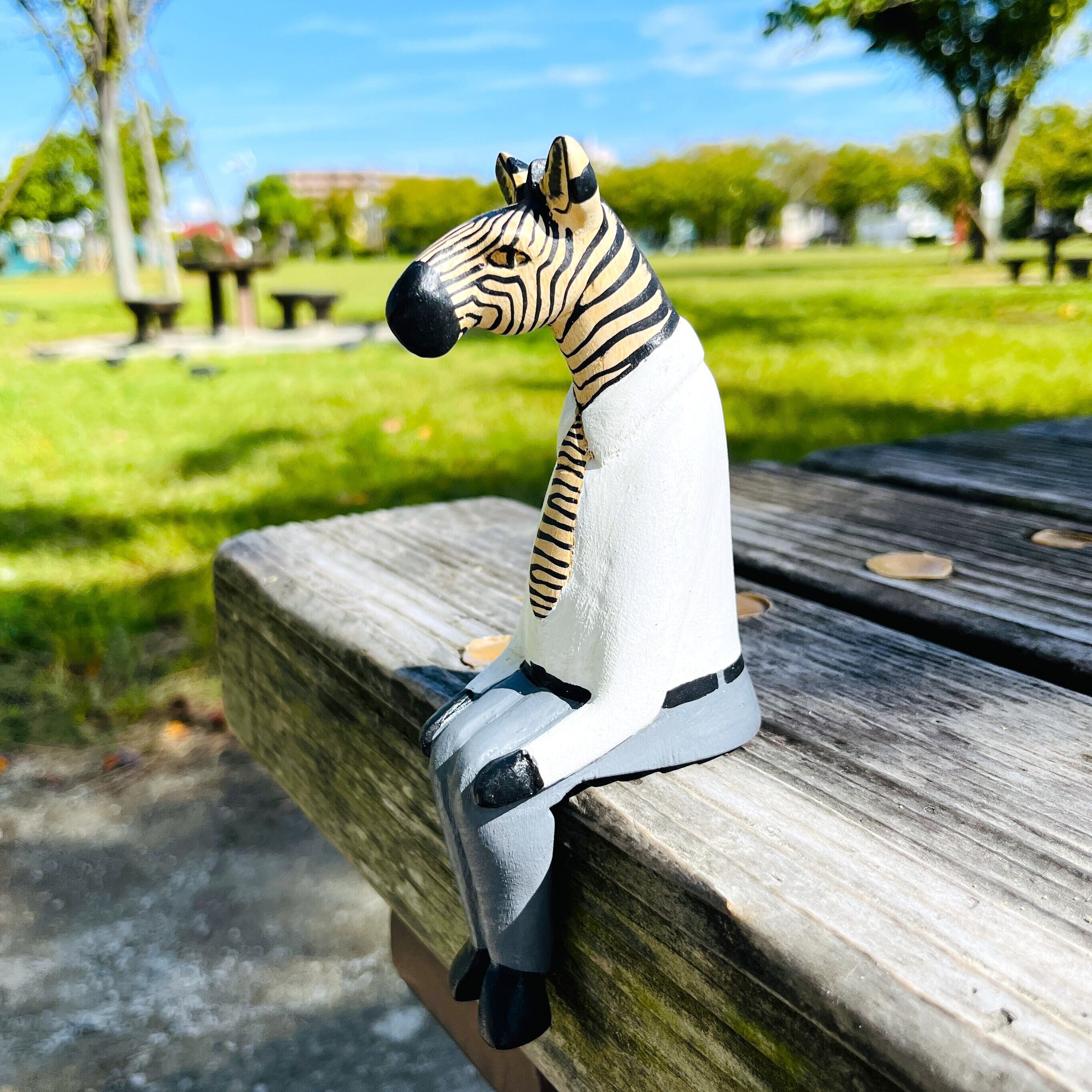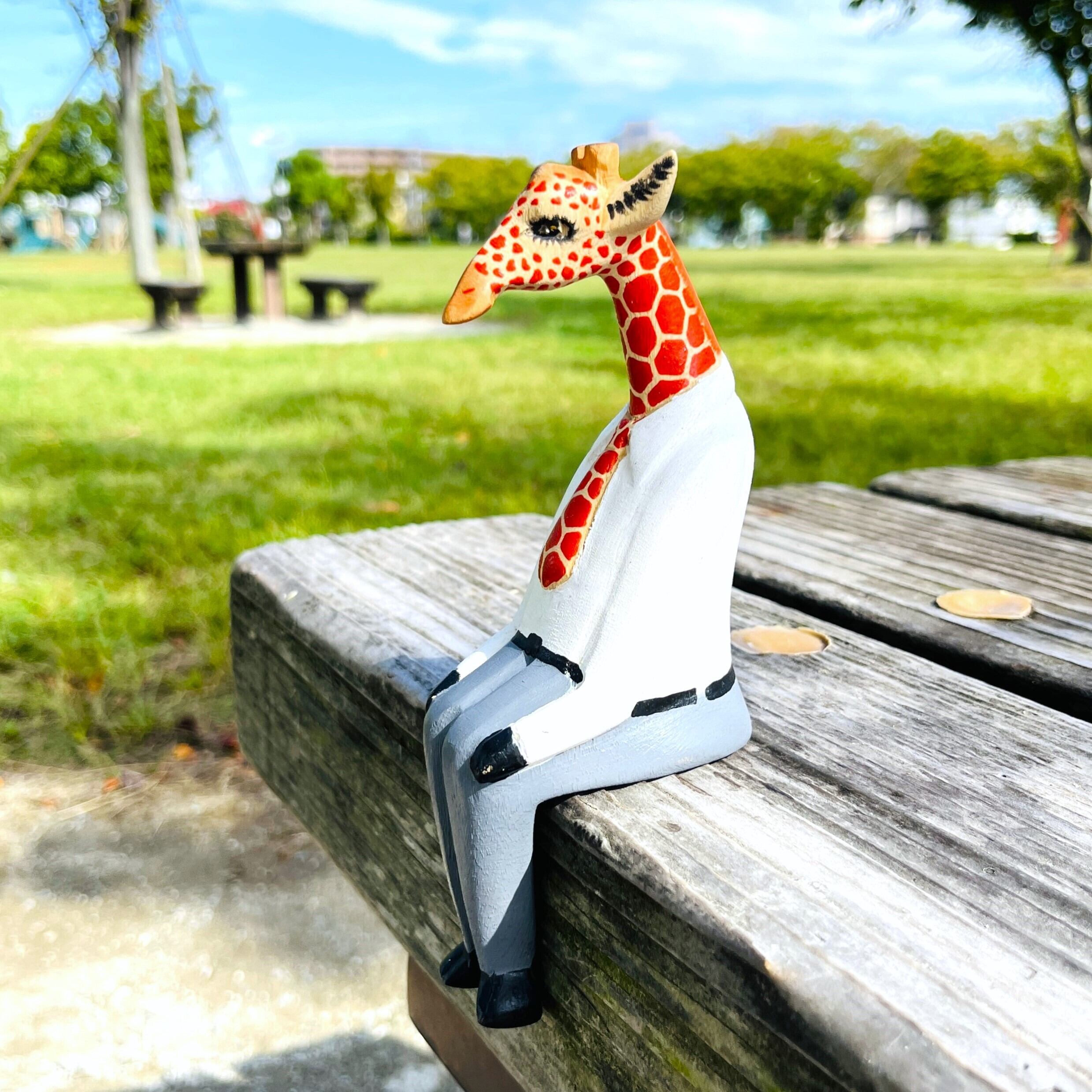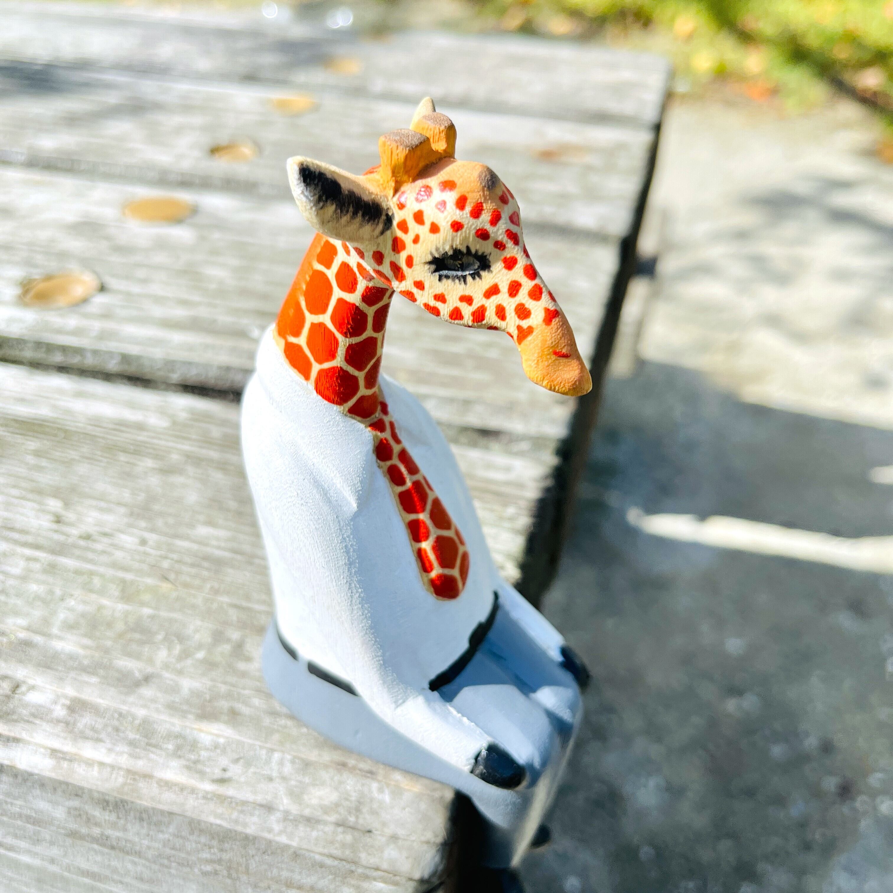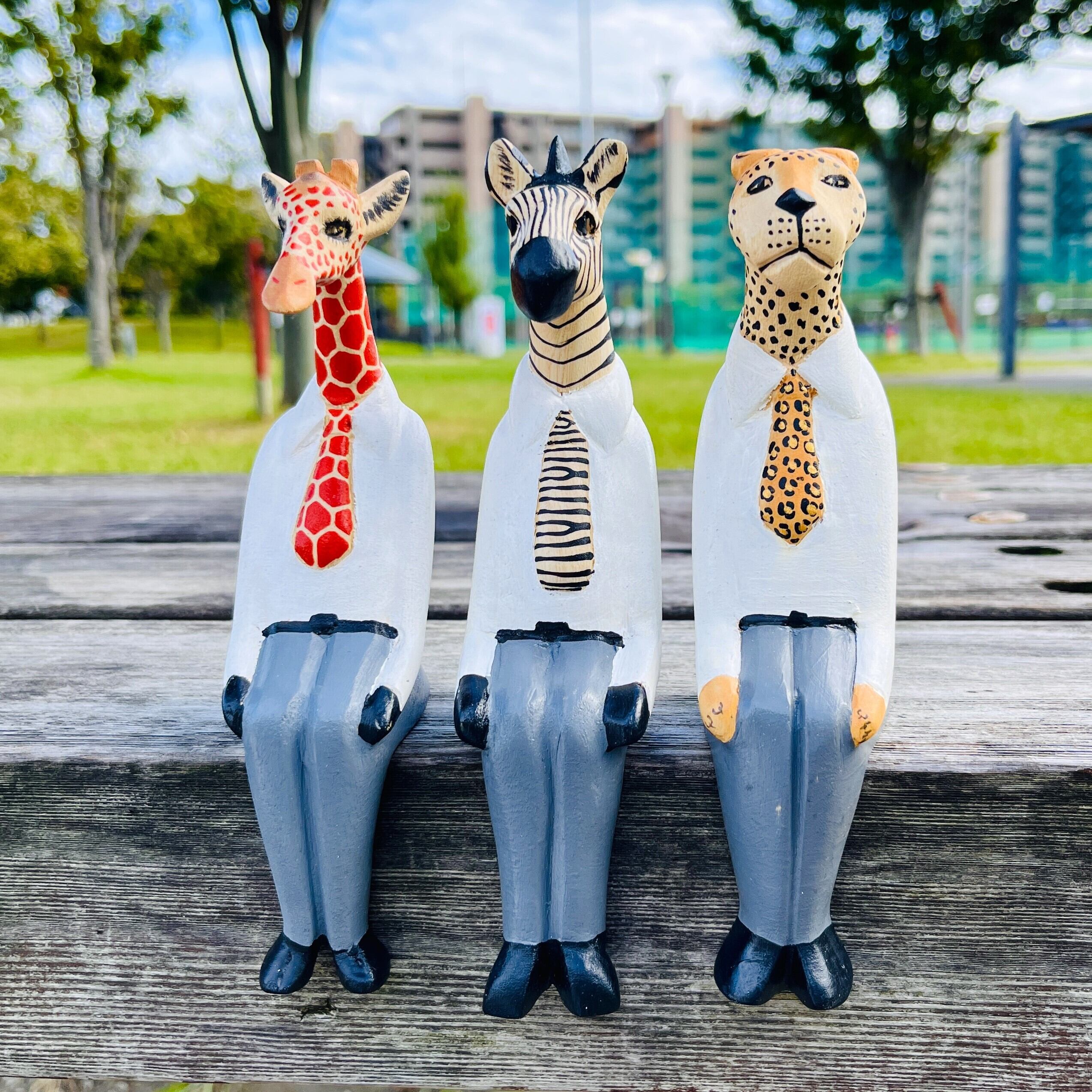 パリッとしたネクタイ姿とは対照的なほのぼのとした表情が魅力のメル木彫りお座り動物のサラリーマンバージョンです。デスクや棚、窓辺にちょこんと飾ってお楽しみください。